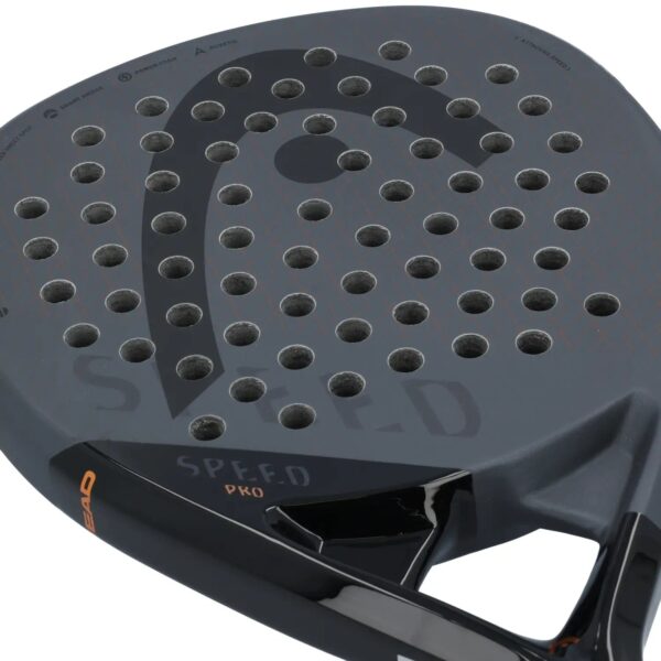 מחבט הפדל HEAD Speed Pro 2023 מציע ביצועים ברמה גבוהה עם עיצוב מודרני ומרשים. המחבט מגיע בגימור מבריק בגווני אפור כהה עם פרטים בשחור ונחושת, המעניקים מראה אלגנטי ויוקרתי על המגרש.