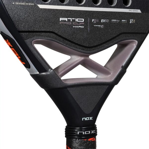 מחבט הפדל NOX AT10 Pro Cup Hard 2025, חלק מקולקציית 2025 של NOX ובשיתוף השחקן הבכיר Agustín Tapia, תוכנן לספק ביצועים גבוהים במיוחד ולשלוט בכל נקודה במגרש. העיצוב האלגנטי בצבע שחור עם פרטים כסופים וגימור תלת־ממדי מעניק מראה מודרני ומרשים על המגרש.